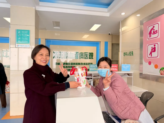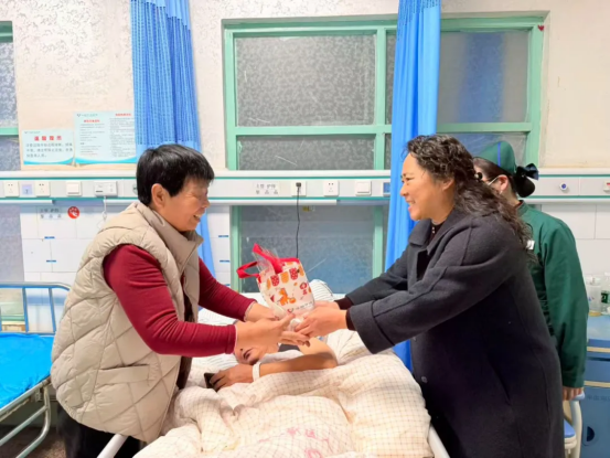 住院患者张阿姨接过慰问品,感动地说:"没想到大年初一还能收到医院的礼物,虽然不能回家,但这里让我感受到了年的味道。"