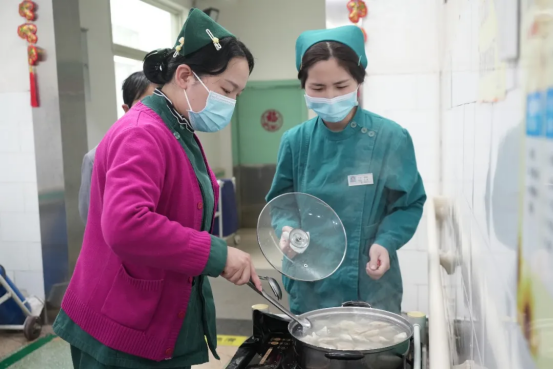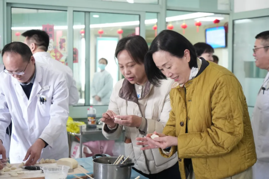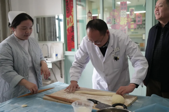 随后,院领导走进病房,将一份份暖心饺子送到患者与家属手中,仔细询问病情恢复、饮食起居等情况,叮嘱医护团队做好节日期间诊疗与照护,送上早日康复的美好祝愿。患者与家属接过饺子,脸上洋溢着感动与欣喜,纷纷表示:“在医院过年也能吃上热腾腾的饺子,感受到家一样的温暖,谢谢医院、谢谢医护人员的用心照顾。”