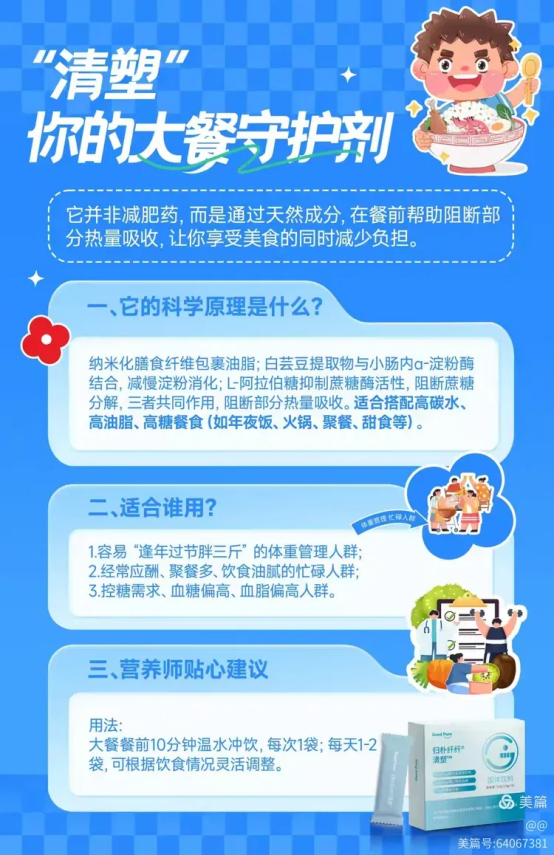 4.餐前使用“大餐救星”清塑,可减少70%油脂及糖分的吸收,江湖救急全靠“它”。