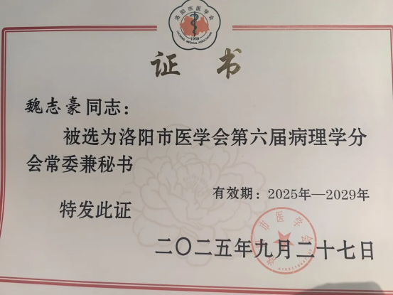 此次当选,既是洛阳市医学会及同行专家对我院病理科长期以来工作的高度肯定,更是对科室未来发展的殷切期许。作为常委秘书单位,我院病理科将承担起分会日常学术活动组织、区域病理技术推广、基层病理人才培训等重要职责,搭建起全市病理学科交流协作的桥梁纽带。