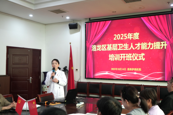 洛龙区卫健委杨延芬代表卫健委对我院承办此次培训工作给予了充分肯定,并指出,基层医师是居民健康的“守门人”,提升其服务能力是深化医改、实现“健康中国”战略的关键一环。并希望全体学员珍惜机会、潜心学习、学以致用,努力将所学知识转化为服务百姓的真本领,为辖区居民提供更优质、更高效的医疗服务。
