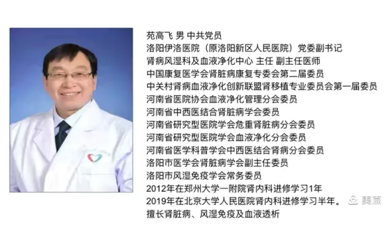 我院肾病风湿科(血液净化中心)作为医院发展的重点科室,是洛阳市医学会肾脏病分会副主任委员单位,洛阳市医学会血液净化分会常务委员单位,在医院党委副书记、科主任苑高飞的带领下,踏实勤奋,技术实力不断提升,尤其在血液净化及血管通路领域取得较大发展。