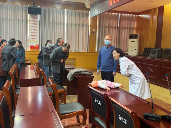 11月21日,急救科普培训团队走进关林街道办事处,为辖区60余名机关干部职工科普急救、防癌筛查知识。