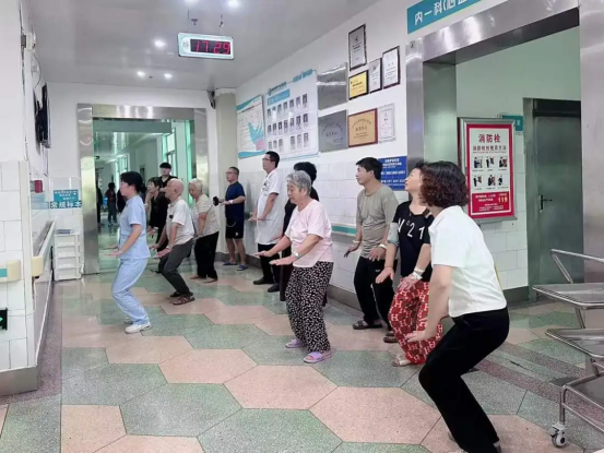 我院定期组织心血管疾病的健康科普教育,多次到社区、机关培训胸痛症状的识别及两个120的重要性。医生、护士、患者共同进行八段锦锻炼,助力心脏康复之路。