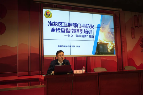 消防救援支队参谋王盛授课《洛龙区卫健部门消防安全检查指南指引培训-树立“简单消防”理念》。